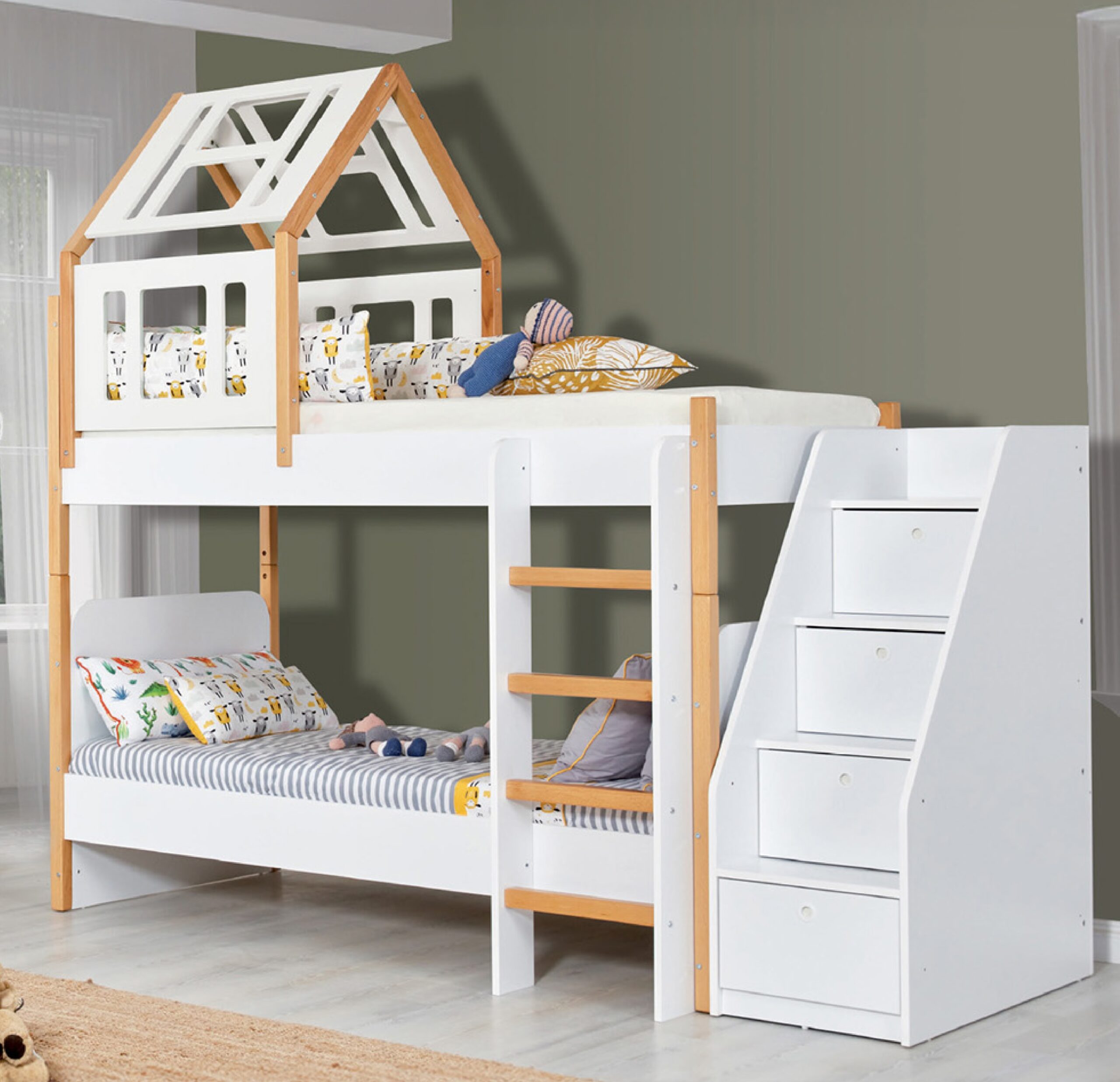 Montesori krevet na sprat sirina 200cm visina 230cm dlabocina 98cm